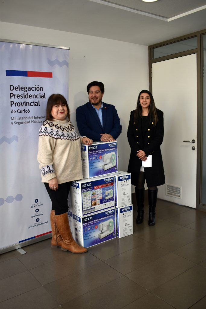El Delegado Presidencial Provincial de Curicó, José Patricio Correa Sánchez, junto a la señora Margarita Villarroel y la asistente social encargada de evaluación del Fondo ORASMI de la Delegación Provincial, Bárbara Martínez.