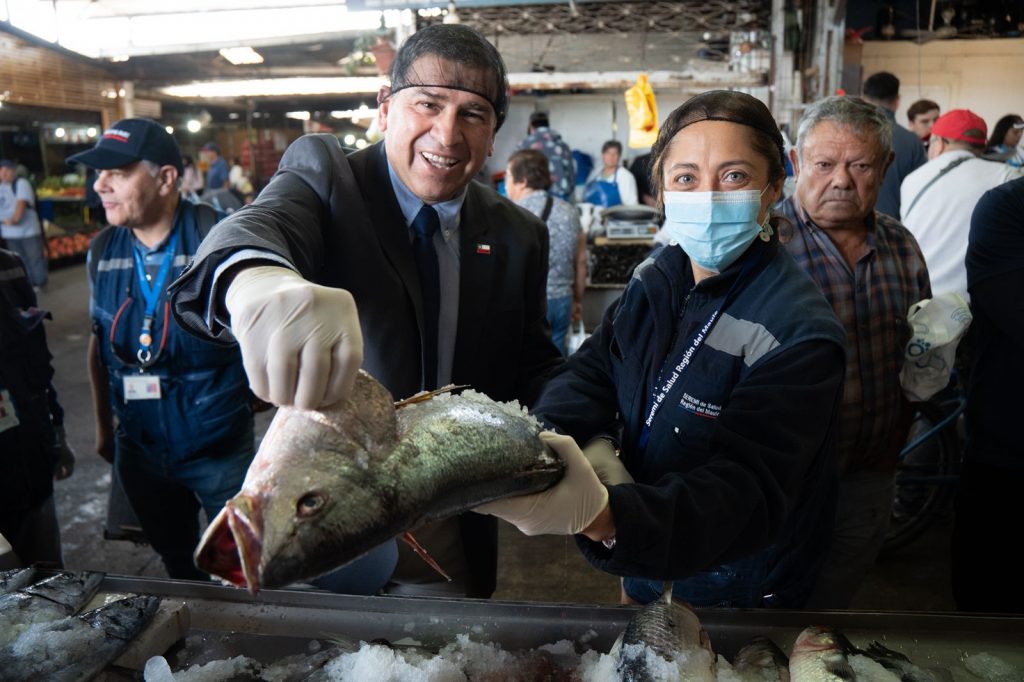 El Delegado Presidencial Provincial de Curicó, Óscar Águila, y la Seremi de Salud del Maule, Iskra Cox, encabezaron una fiscalización sanitaria en la Felicur, donde verificaron las condiciones de venta de pescados y mariscos e hicieron un llamado a la comunidad a comprar estos productos en locales establecidos.